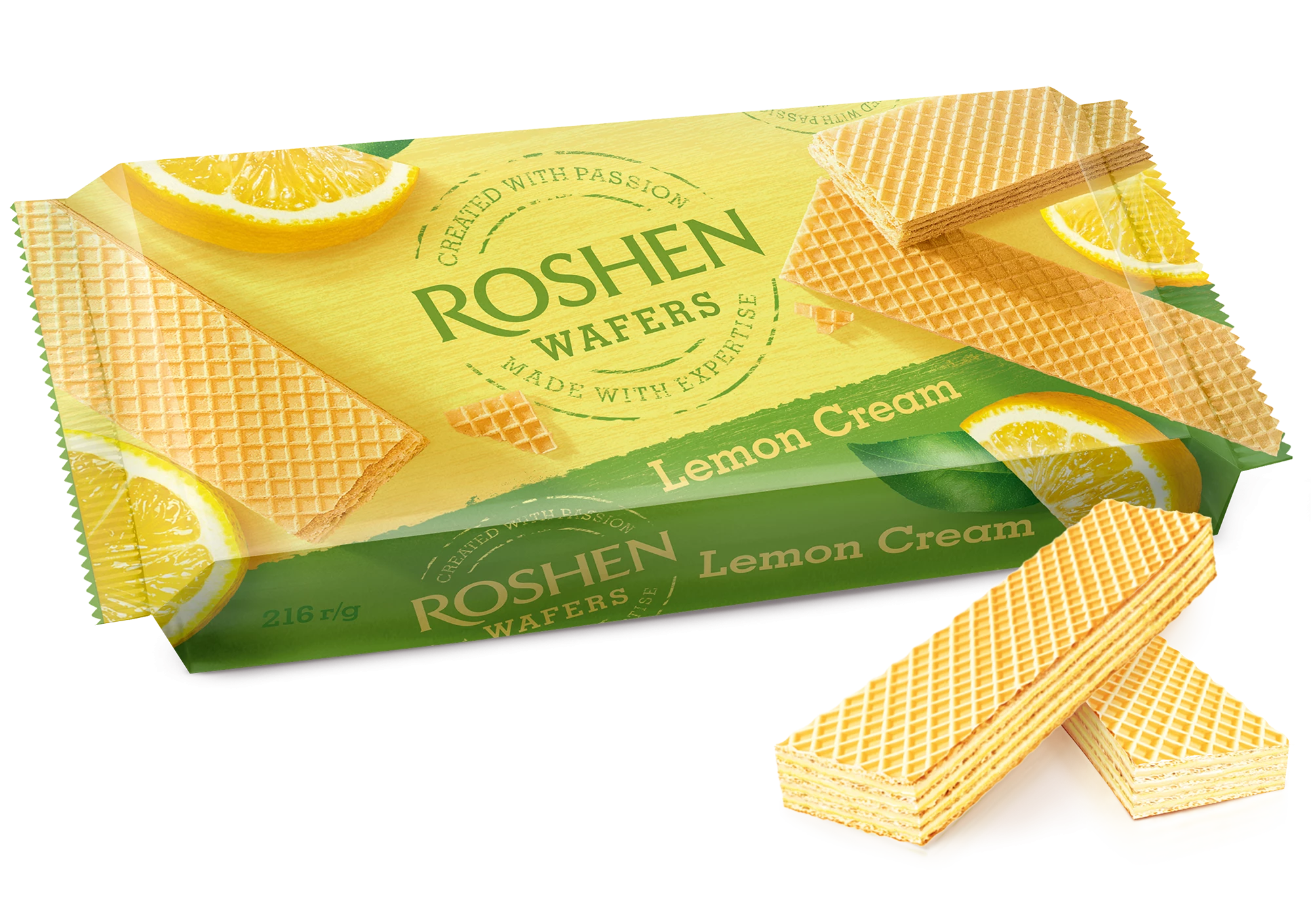 Roshen Lemon Wafers – Light and crispy wafers filled with refreshing lemon cream, offering a tangy twist to a classic sweet snack. Delivered in a carton of 16 packs, each 216 g. Store in a cool, dry place.read more..