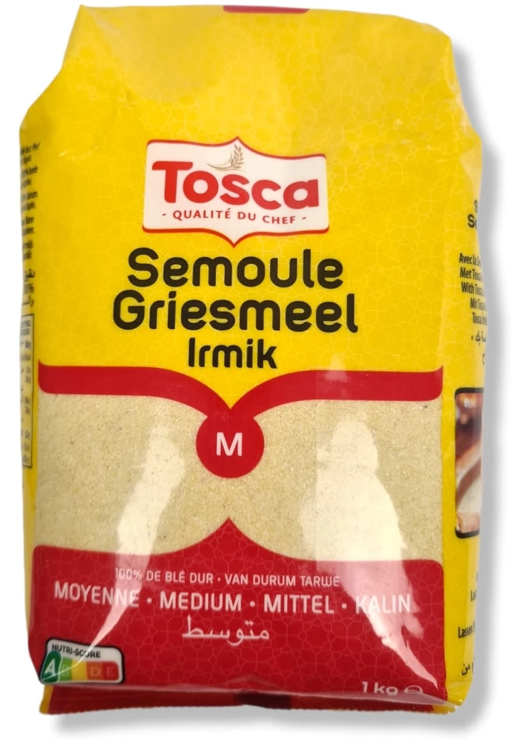 Tosca Moyenne Semolina (Semid) Tosca Moyenne Semolina is a medium-ground semolina made from 100% durum wheat, offering a balanced texture ideal for North African couscous, traditional desserts, and baking. Supplied in 10x1kg bags, it's suitable for home kitchens and small food businesses. Store in a cool, dry place.read more..
